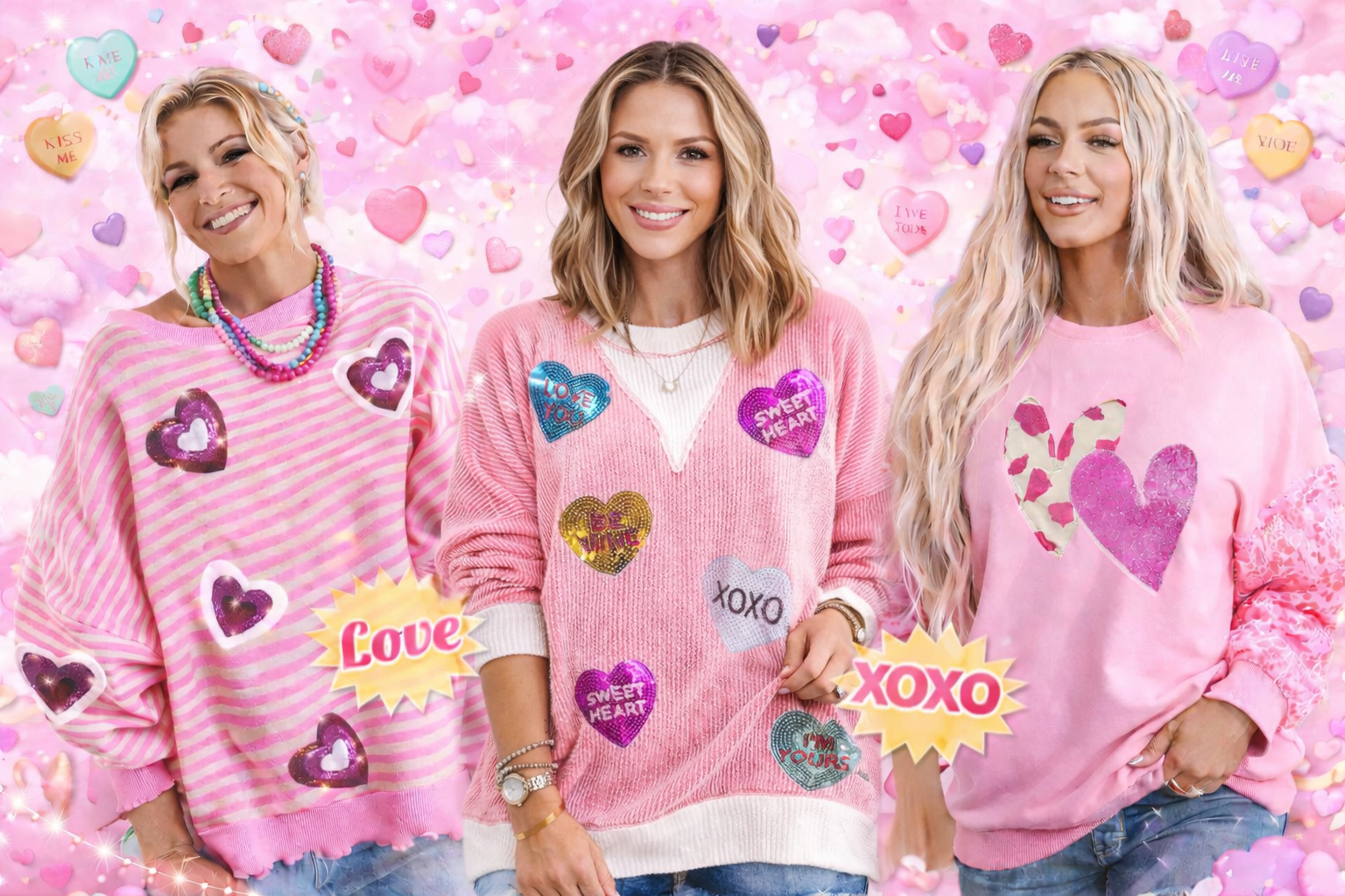 Pearl Embellished Heart Pattern Valentines Day Sweater