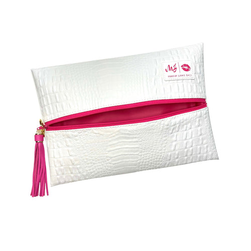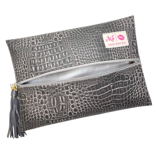 Black Checker Print Leather Zipper Makeup Bag