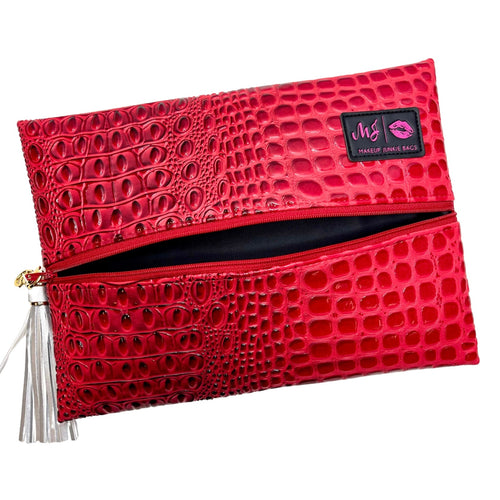 Fiery Red Trendy Pattern Knit Ribbed Cuffs Crew Neck Sweater